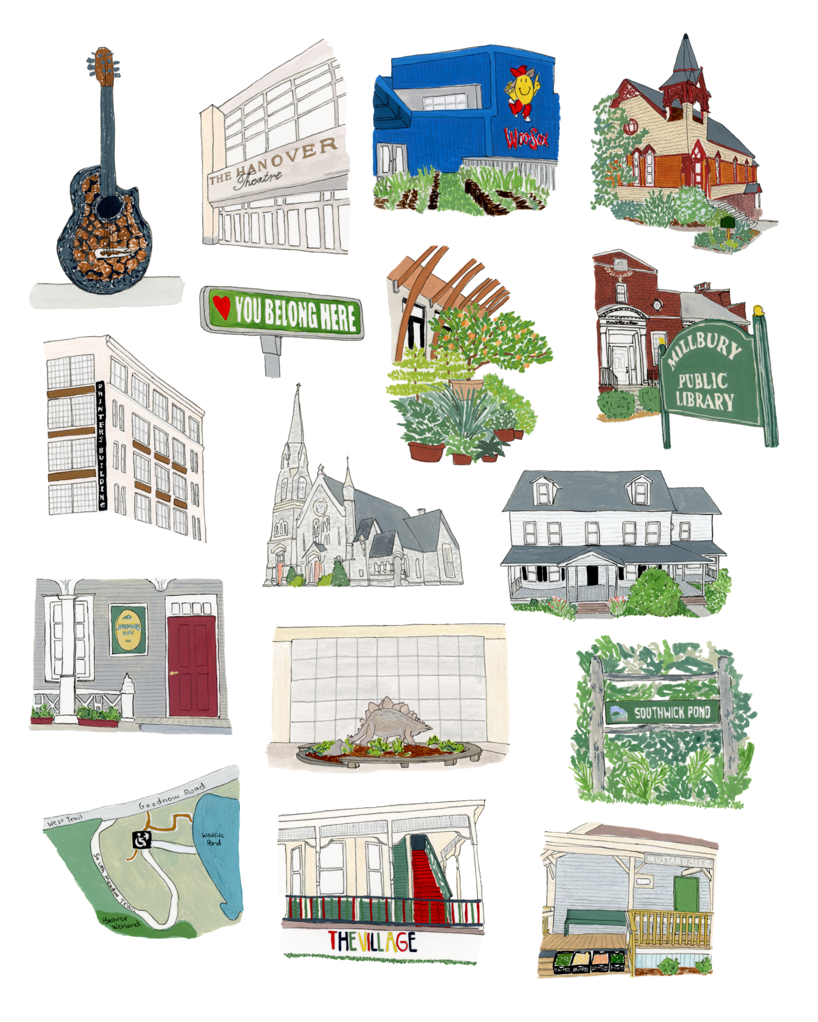 Created by Sarah Wormann for Greater Worcester Community Foundation’s 50th anniversary, the print features the following nonprofits: